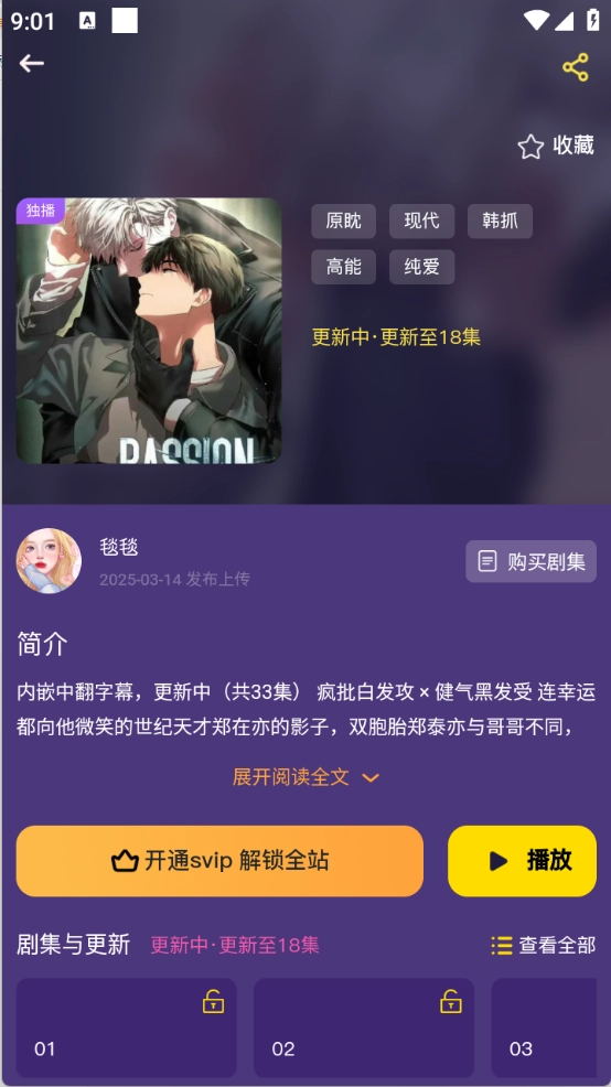 点开想听的广播剧进入详情页,可以进行播放、收藏。