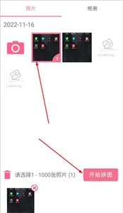 2、打开拼图功能后,可从拍照或相册中选择照片,接着点击开始拼图。