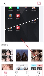 3、在下方能够挑选拼图的模式,包括海报、自由、拼接、自定义这几种,然后选择自己喜欢的模板样式;