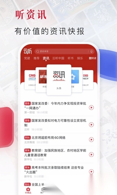 听资讯:权威新闻实时更新,听云听便能知晓天下事;