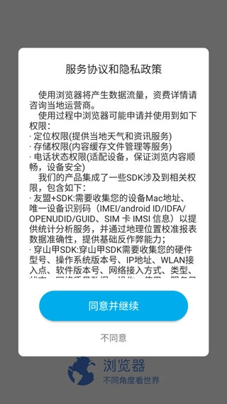 1、打开微米浏览器最新版,点击同意;