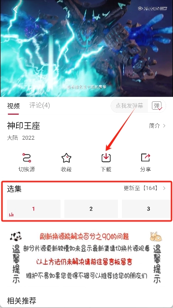 5、在播放界面中我们点击集数进行切换,或是进行缓存。