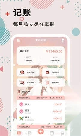女神记账是一款专门为女生设计的记账软件。女神记账最新版能帮你轻松搞定日常开销管理。你可以用它来记录收支、开支、生活开销等账单。女神记账最新版界面美观易用,只需动动手指,就能快速记录你的每一笔收入和支出啦。快来体验吧!