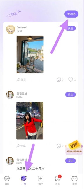 4、点击下方广场按钮,再次点击右上角能够发布作品信息。