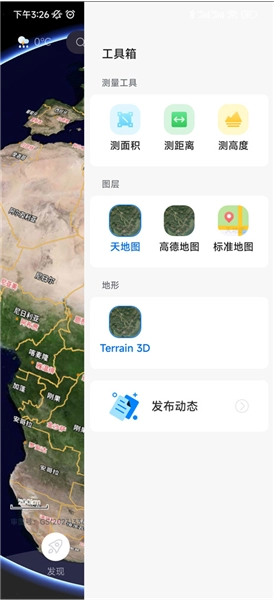 1、在地球首页点击【工具箱】按钮,选择【测量工具】