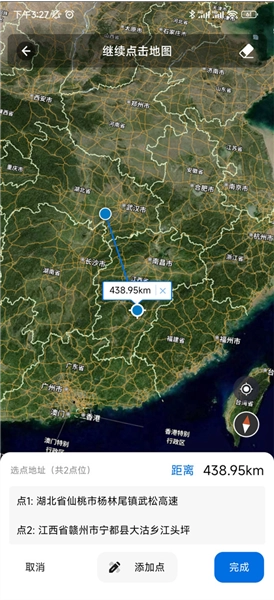 3、测量距离的流程如下(以2个点举例,测量距离需要至少2个点位,您可自行添加更多点位)