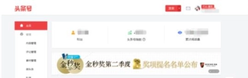 3、最上面的一排可以直观的看到你的粉丝数量头条号指数和累计阅读量,一般的自媒体平台都是有这些东西的,而且也是等级和指数的制度