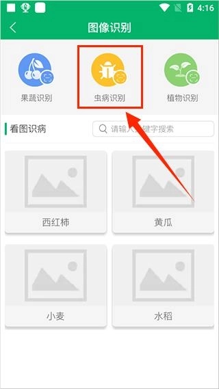 3、点击虫病识别选项,系统会调用摄像头进行识别,等待识别结果即可。