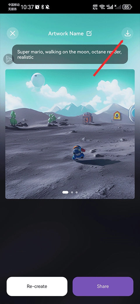 5、最后软件就会为你生成AI图片啦,满意的话可以点击右上角按钮将图片保存到相册哦