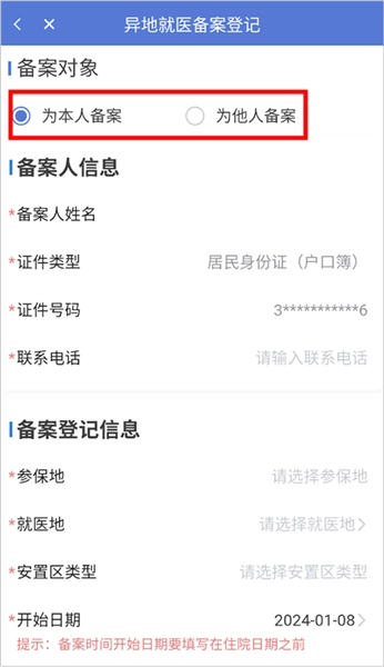 3、为本人备案填写本人信息(为他人备案:填写他人信息)