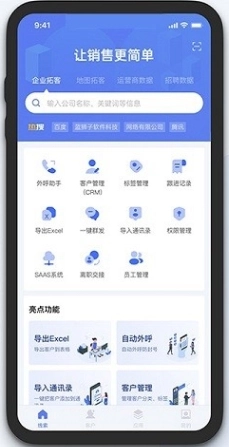 蓝云拓客是一款专为销售精英量身定制的高效拓客助手。这款应用巧妙地融合了地图功能,帮助销售人员快速锁定潜在客户,提供最新的招聘和运营商数据,确保您始终掌握最新市场动态。通过蓝云拓客,您可以轻松跟踪并管理客户,利用丰富的销售工具提升业绩,让销售工作变得更简单。不要让过时的数据阻碍您的步伐,蓝云拓客助您挖掘精准客户线索,加速业务增长。