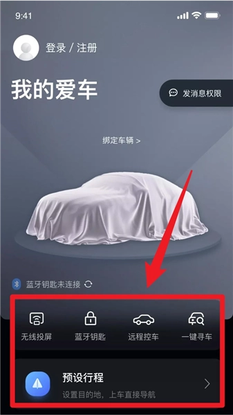 3、登录后在首页点击“绑定车辆”完成车辆关联,然后就可以使用蓝牙钥匙、远程控车、导航找车等各项核心功能。