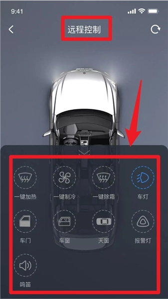 4、进入“远程控制”模块,可以远程控制空调加热、车灯闪烁、鸣笛、开车窗等,适合提前准备或远程响应日常需求。