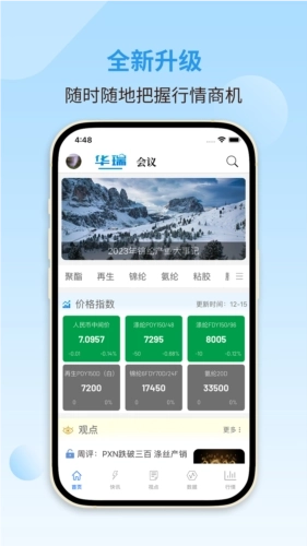 华瑞信息通免费版,凭借其全面的资讯服务和便捷的操作体验,已成为众多专业人士和行业爱好者的首选。在这一平台上,无论是深入阅读行业快讯,还是搜索特定的市场动态,亦或是浏览丰富的焦点资讯,你都可以轻松实现。更有详尽的价格指数展示,让你随时把握产品价格、效益、库存、负荷等关键指标,确保投资决策的精准无误。同时,文章收藏功能让重要信息触手可及,确保信息永不丢失,是行业人士的得力助手。