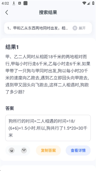 3、这边用文字搜索来解答一些数学问题,当然也可以点击拍照,如下图:
