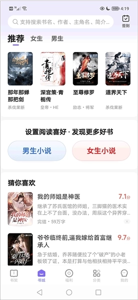 3、根据阅读喜好推荐,根据用户阅读历史、阅读小说类型,智能推荐同类型的小说。