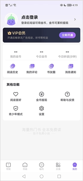 4、新用户7天登录礼,自登录起连续7天阅读小说,每天都可获得新人金币礼包奖励。