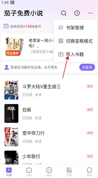 2、选择导入书籍;