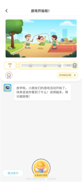 对话过程中,即时奖励加分、星星和徽章,让孩子在玩乐中完成看图写话。