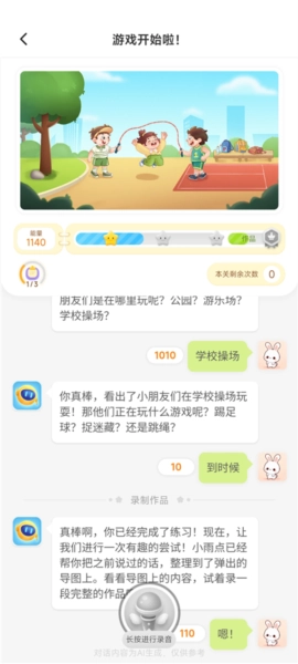 2、语音互动交流,录制语音与智能助手对话,提升表达能力。