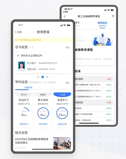 继续教育是针对已获得从业资格证书后,更新有效期而进行的后续教育管理。通过教育学分的建立及管理,考核机构能够清楚的了解到用户的学习情况,从而再次为用户颁发从业资格证书。