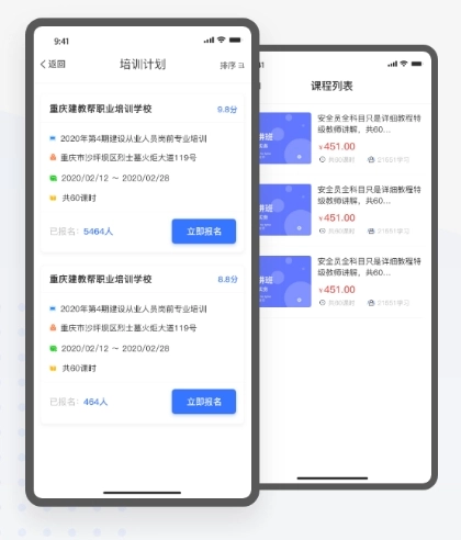 1.点播课程:建筑行业的岗前培训和继续教育点播课程,课程科目覆盖八大员(安全员、资料员、材料员等)、工人(砖瓦工、抹灰工、水泥工等)等多类课程。