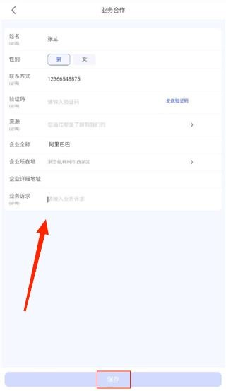2、申请试用时,依次输入姓名、性别、联系方式等必要信息,点击保存按钮提交申请,待审核通过后即可开始试用。
