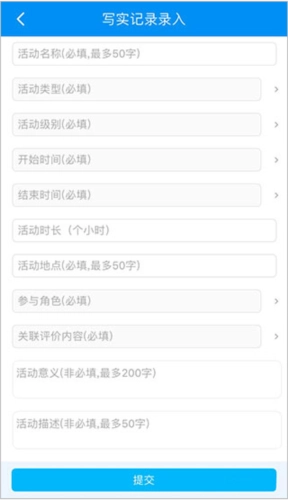 3、学生点击“写实记录”选项后,可录入对应信息,点击“提交”按钮完成操作。