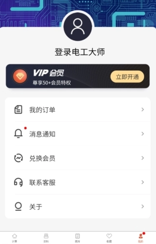 1、在我的页面中点击登录电工大师按钮;