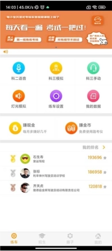 3、进入软件首页的“练车”界面,你就能在此开展科目二、科目三的语言模拟练习;