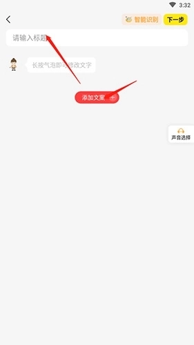 2、进入编辑界面,添加标题和文案,接着点击“下一步”按钮。