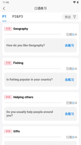 学习资料:我们提供丰富多样的口语学习资源,涵盖听力素材、阅读文本、写作资料等不同类型,助力用户全方位增强语言能力。