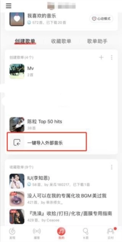 3、在创建歌单板块下拉,找到导入外部音乐选项