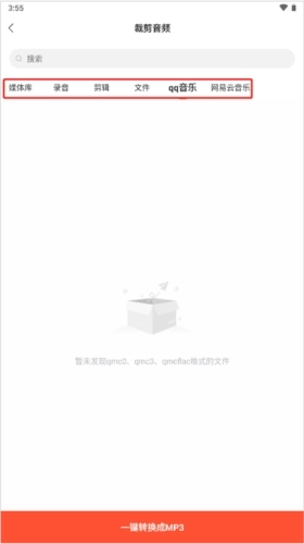 2、进入“音频剪辑”界面后,可从媒体库、录音、剪辑、文件、QQ音乐、网易云音乐等渠道中挑选要剪辑的音频,选定后点击下一步,就能根据自身需求开始音频剪辑操作啦。