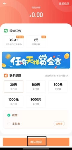 2、当用户的账户余额达到一定额度时,即可申请提现,只需点击确认提现按钮即可完成操作。