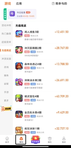 1、用户在赚钱页面中选择任何一个游戏或者应用;