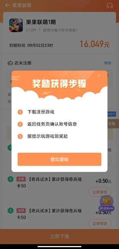 2、用户点击进入后,会直接弹出获取奖励的步骤说明,按照这些步骤操作即可直接赚取收益。