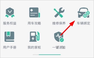 2、进入服务页面后,找到图中所示位置的【车辆绑定】功能,就能完成车主绑定操作。