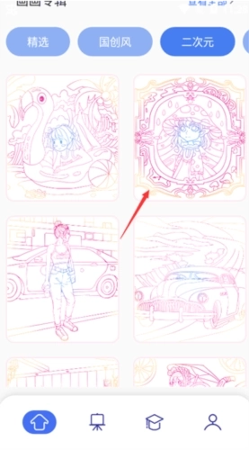 梦境生成器提供了多个类别的未上色线稿,用户可以从中挑选并进行上色,从而创作出色彩丰富的作品。