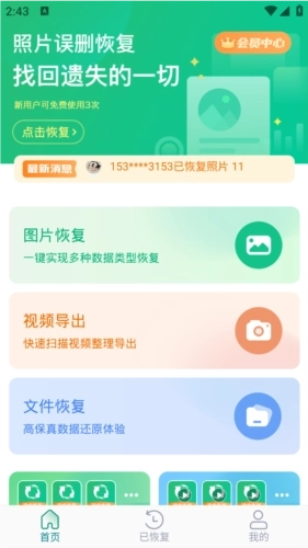 3、登录成功后,点击“图片恢复”选项,就能查看本机上可以恢复的照片了。