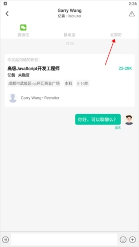 9、届时在求职沟通页面就能向用人单位的人事发送其他简历了