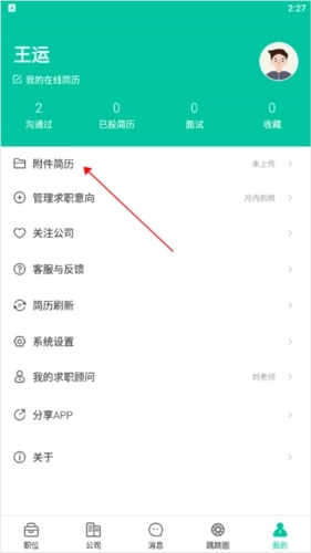 4、用户还能在【我的】页面里,通过点击【附件简历】来备份多份不同的简历。