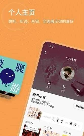 1、个人主页,想听的,听过的,全部都会进行显示;