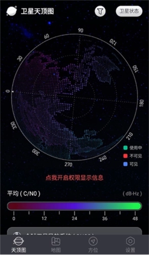 用户点击天顶图后,就能查看卫星天顶图,地图上会显示出每一颗卫星的方位与状态。
