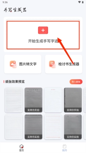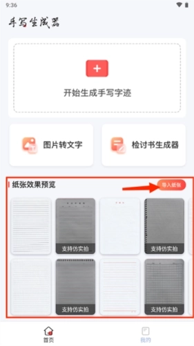 6、最后,首页下方的纸张预览效果区域,用户还能自行导入纸张。