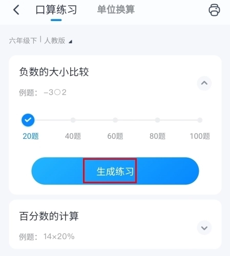 1、在打印页面中点击口算练习按钮;