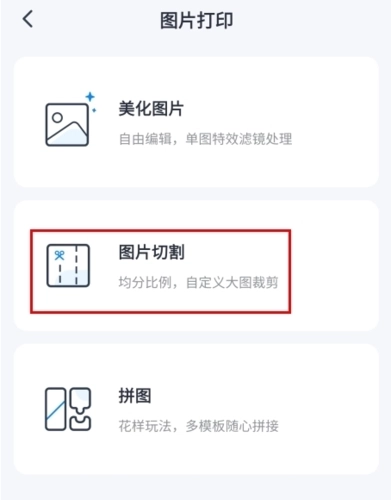 1、在图片打印页面中点击图片切割按钮;