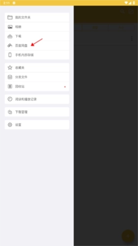 1、打开百度网盘,找到需要解压的文件,然后打开解压软件,在其左侧菜单中点击“百度网盘”选项。