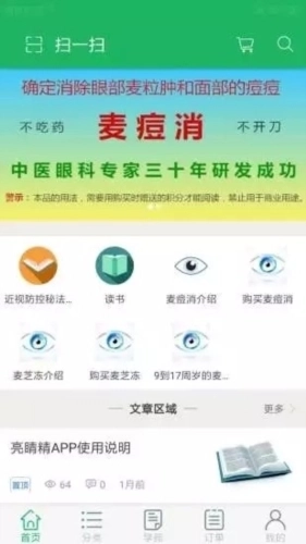 4、提供近视防控、麦粒肿消除、痘痘改善等相关产品,支持在线下单,由快递配送到家;