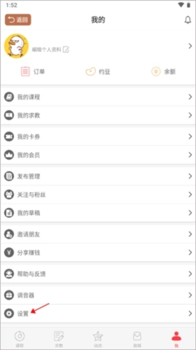 1、打开应用并登录账号,进入后切换至【我的】页面,接着点击“设置”按钮。